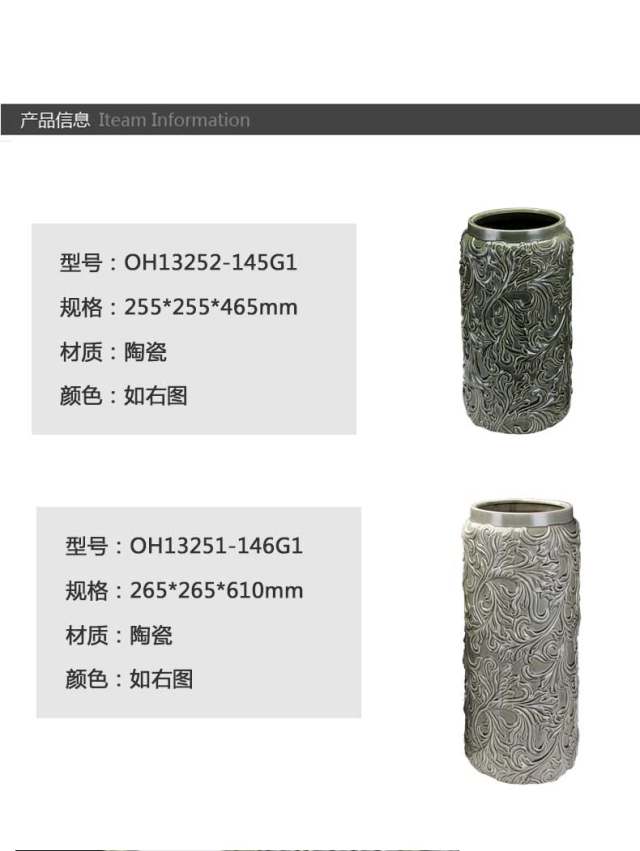 东方灯饰ZT亮光绿灰陶瓷花瓶OH13252-145G1