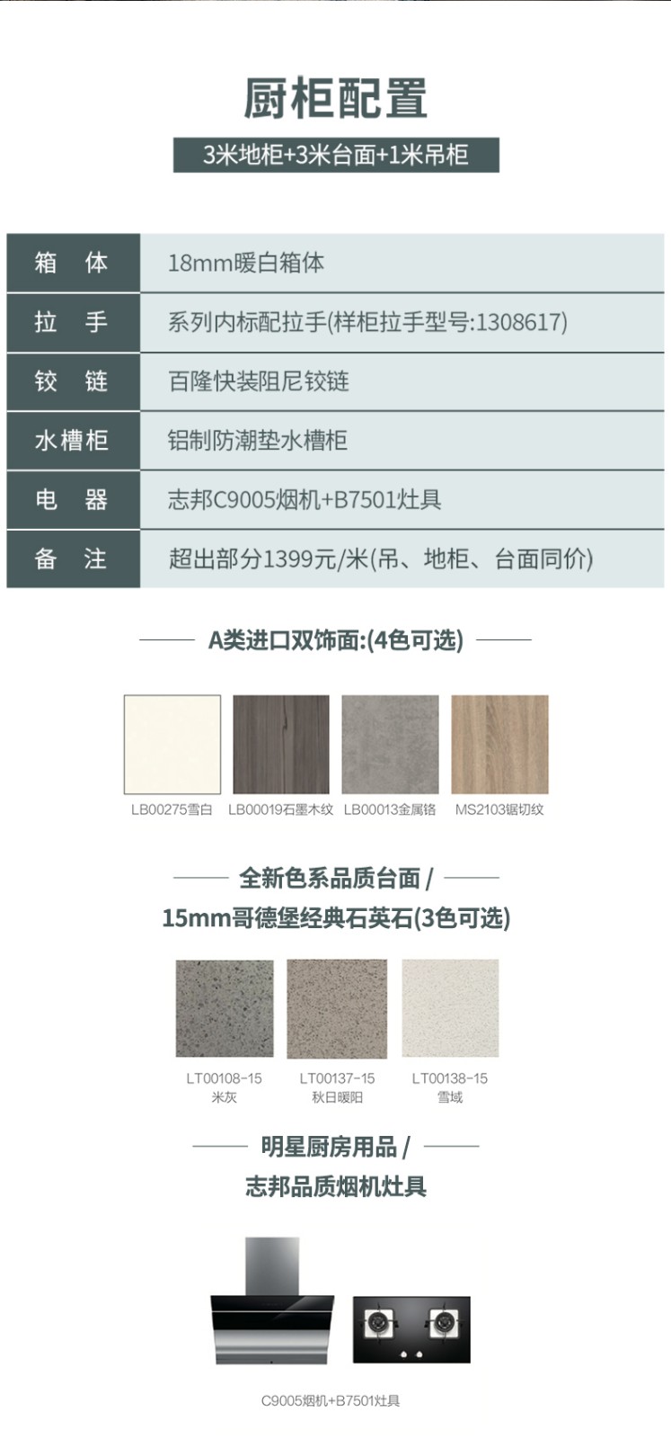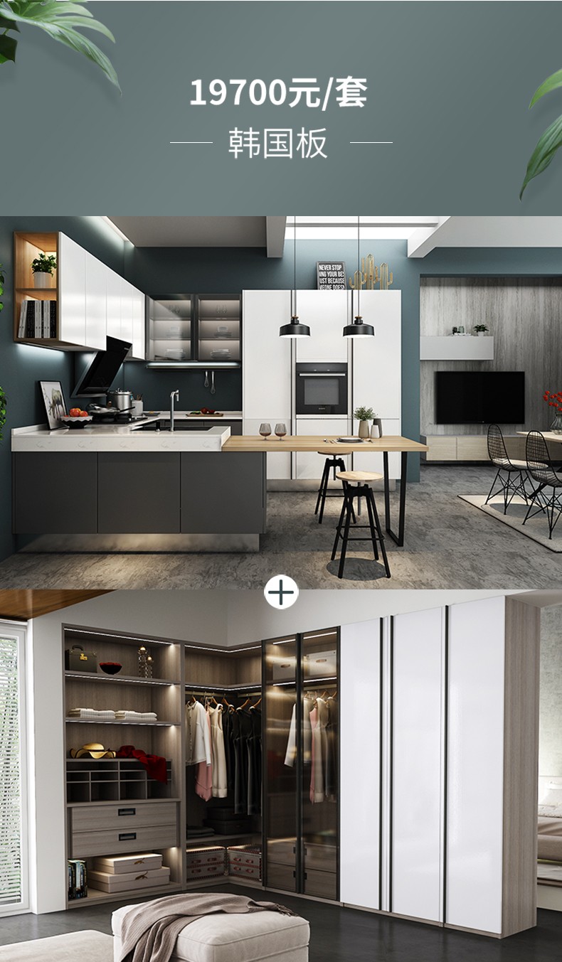志邦全屋定制衣柜 橱柜定制整体橱柜厨房厨柜定制衣柜衣帽间储物柜电视柜 现代简约一厨两卧 一厨两卧定制套餐