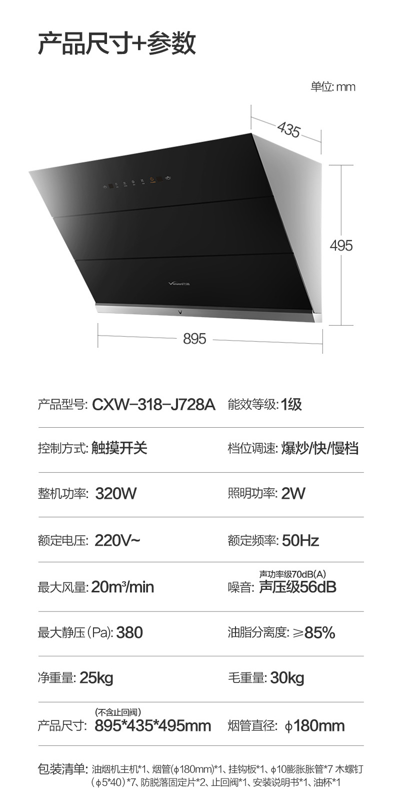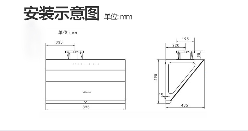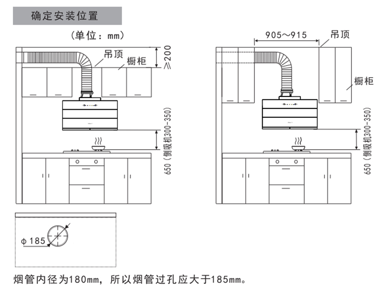 烟机安装尺寸:900mm±50mm(烟机宽度)