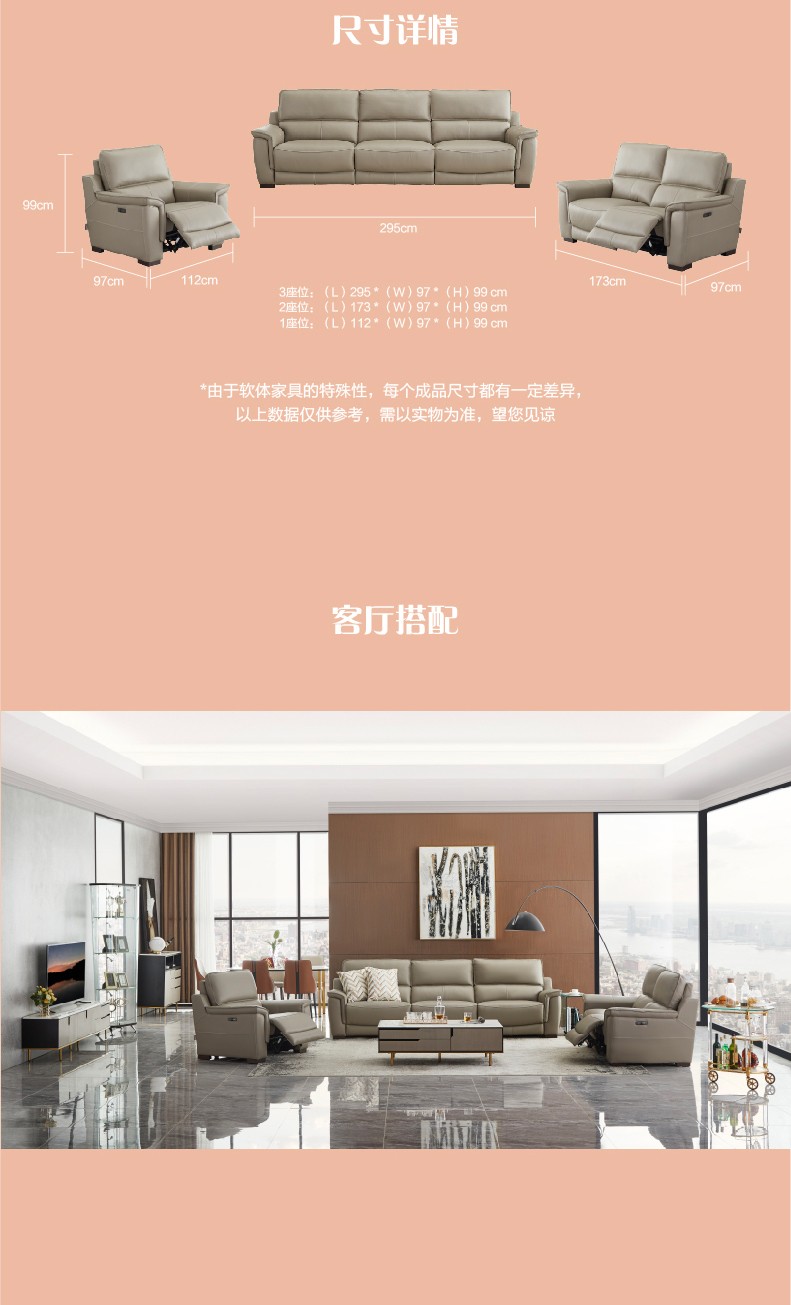 芝华仕贵族真皮功能沙发系列SU-US50393M 大户型现代简约电动真皮沙发