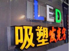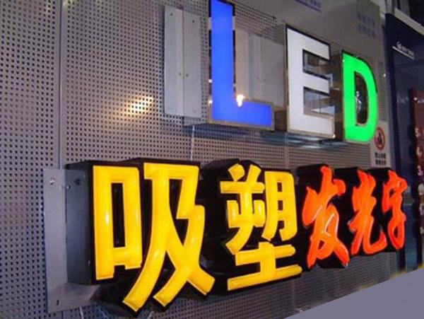 LED吸塑发光字由压克力吸塑面板、发光字箱体、及发光字光源三部分组成。吸塑发光字制作工艺根据制作方案,开吸塑专用模具。通常尺寸在2.5mx2.5m以内的发光字可使用3mm百亚克力板,采用分段拼接,起鼓高度2.2-3cm。尺寸在2.5mx2.5m以上的发光字建议使用5mm厚亚克力板,起鼓高度2-3cm。