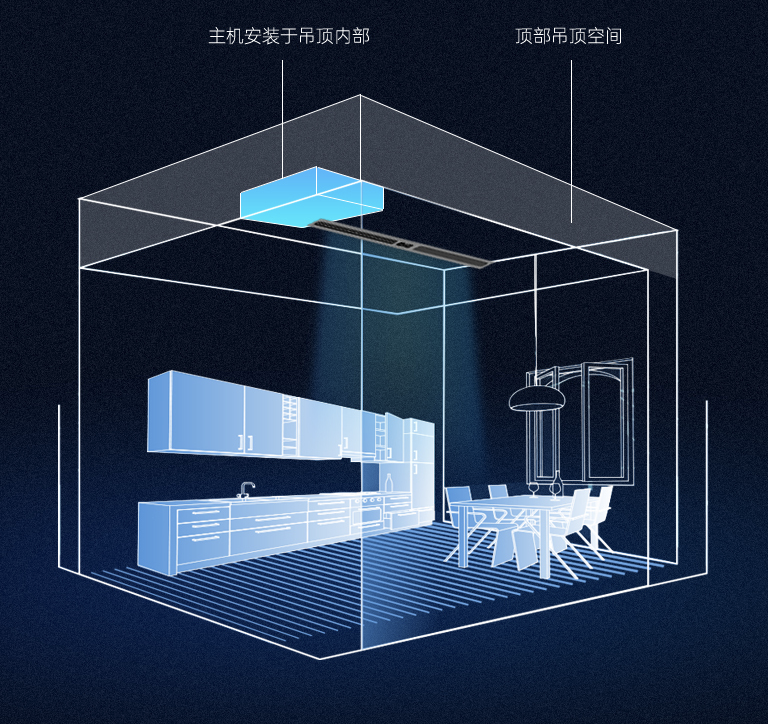 解决因洗菜洗碗用水多,烹饪水蒸气弥漫的潮湿环境困扰,让厨房环境干爽舒适
